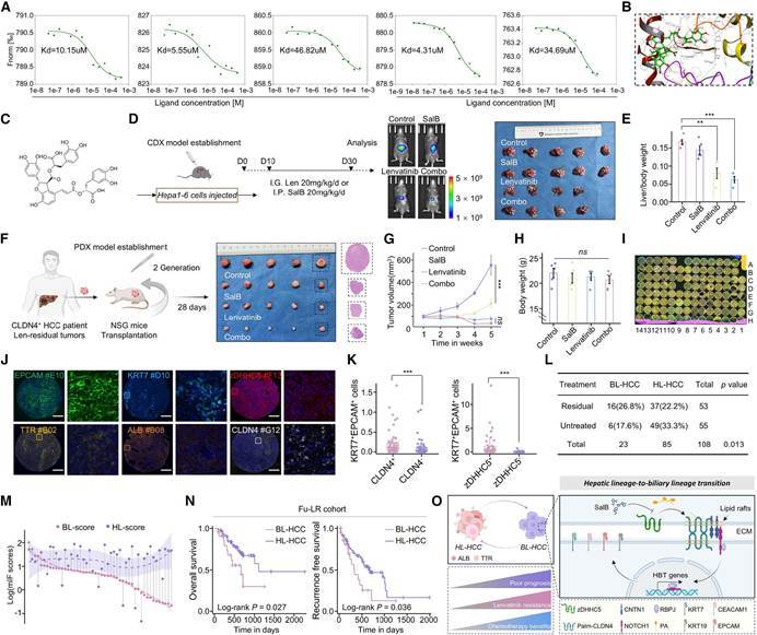 肝细胞癌(Hepatocellular Carcinoma, HCC)作为全球高发且高死亡率的恶性肿瘤,临床治疗疗效有限、预后差,晚期患者常用的一线药物仑伐替尼(Lenvatinib)虽能抑制多个靶点,但客观响应率不足20%,多数患者会耐药且耐药机制不明,制约治疗优化与预后改善;同时,肿瘤谱系可塑性与癌症耐药相关,肝脏中肝细胞和胆管细胞本可互转,肝癌中部分患者会发生肝细胞向胆管细胞谱系转变(HBT)形成混合型肝癌且这类患者预后差、治疗响应低,但HBT在肝癌患者接受仑伐替尼治疗时是否发生、是否驱动耐药及调控机制均未明确,是需探索的关键问题。