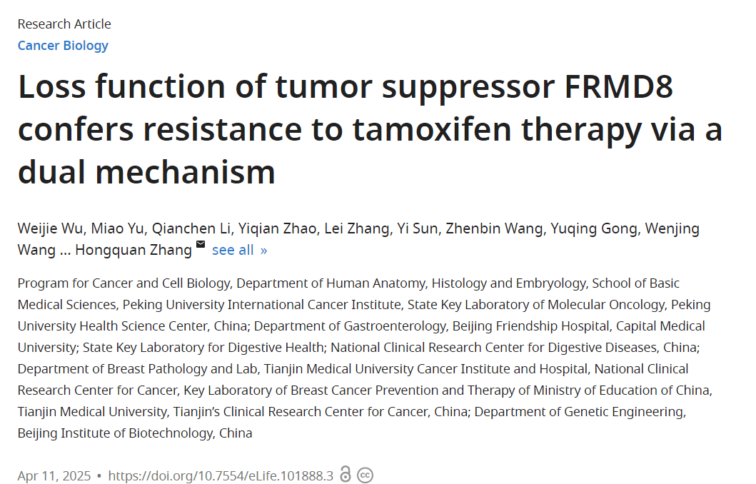 乳腺癌作为全球最常见的恶性肿瘤之一,其内分泌治疗耐药问题一直是临床治疗的难点。近日,北京大学张宏权教授团队发表重要研究成果,首次揭示肿瘤抑制因子FRMD8的功能缺失通过双重机制赋予乳腺癌细胞对他莫昔芬的耐药性。这项研究中,团队借助TissueGnostics公司的先进组织细胞定量分析技术,在多个关键实验环节实现了高精度的组织原位分析,为解析FRMD8调控机制提供了强有力的技术支撑。
