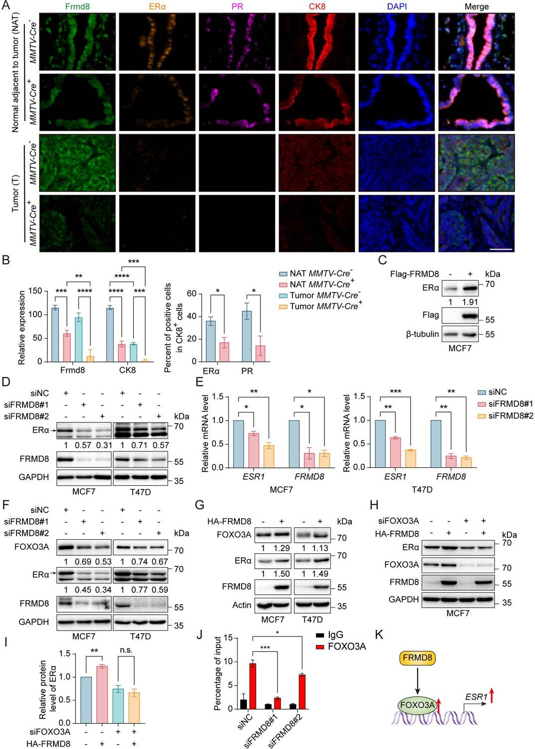 Figure 3:多色免疫荧光定量揭示FRMD8缺失导致ERα/PR表达下调